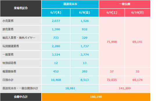 日本東京玩具展,始創(chuàng) 1962 年,由日本玩具協(xié)會主辦的歷史最悠久,規(guī)模最大的專業(yè)玩具展會,截止 2018 年 6 月,該展已成功舉辦 53 屆,每年一屆,本次展會共接待了來自全球 27 個國家和地區(qū)的近1000 家參展企業(yè)蒞臨展會,53,856 名專業(yè)買家前來參觀采購,來訪觀眾達(dá) 160,190 次,展出面積50000 平方米,同比去年增長 11%;其中境外買家2,838 名,增長21%。
