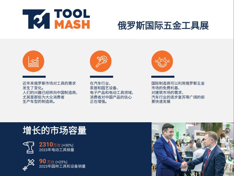 俄羅斯國際五金展覽會Toolmash是由世界著名展覽公司英國國際貿(mào)易與展覽有限公司ITE Group Plc主辦,一年一屆在俄羅斯舉行,是一個五金制品及工具、花園工具的專項(xiàng)展覽會,該展是在俄羅斯及東歐地區(qū)具有較強(qiáng)影響力的專業(yè)展會。
